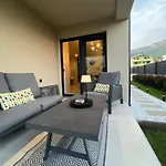 42 m² daire, Split havalimanına 5 km yakınlıkta bulunmaktadır. Teras sizi bahçe manzarasının keyfini çıkarmaya davet eder.